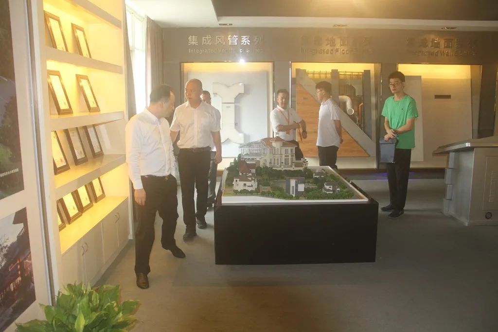 金强控股集团董事长刘金铃、金强建材科技总经理黎忠和热情接待了领导一行,并陪同参观了金强建材科技人文建筑馆。在馆内,黎忠和总经理向来访领导介绍了金强的绿色新板材系统、PC模块房屋体系等公司产品及其在装配式建筑中的应用。