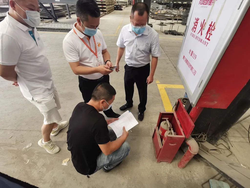 蔡应忠书记一行前往生产车间实地查看,对场所消防通道是否畅通、灭火器、疏散指示标志、应急照明等消防器材配置和性能状况等进行检查,强调克服麻痹思想,确保安全生产形势。