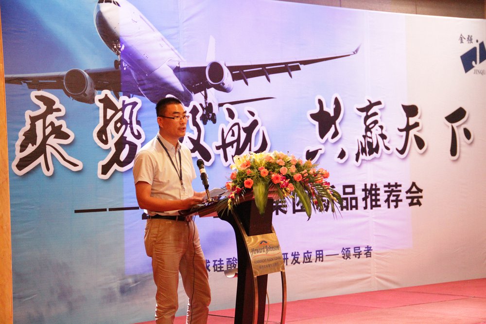 下午16:00,推介会正式开始。金强集团总裁翁斌首先阐述了金强最新的发展战略和企业定位。2014年起,金强集团制订了打造住宅工业化产业集群的战略目标,完成了集团化布局,明晰了集团下属各企业的角色定位。金强科技是专注于新型绿色墙材的研发、生产及售后服务的综合型企业。今后,金强将逐渐脱离销售一线,销售将更多地交给经销商完成,金强苦练内功,专注于提供优质的服务,全力打造一个高效全面的生产、服务平台,为经销商的发展、升级提供全方位的帮助,帮助经销商做大做强,从产品销售商向工程项目系统供应商转变。