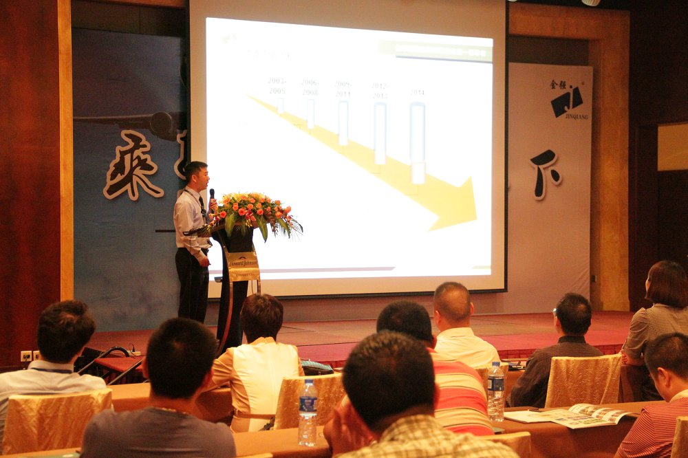 在明确了金强的战略目标后,金强营运中心黎副总对2014年金强全新的营销政策进行了详细的讲解。2014年,为扶持金强经销商,金强提出了极具成长性的“两年百万计划”:金强将通过一个全新的“131工程”,即:1种优质产品,3驾品牌马车,1个极具吸引力的促销活动,在2年时间内,打造一支优秀、忠诚度高的经销商队伍,实现让经销商盈利百万的目标。