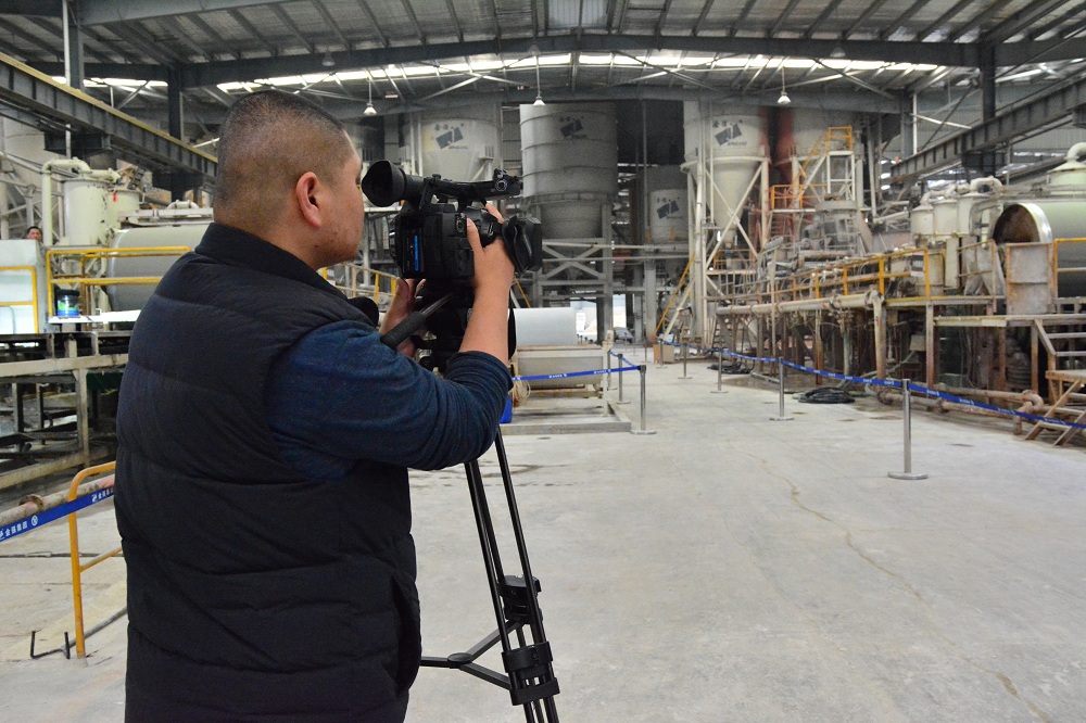 随后摄制组一行人前往金强新材料园绿色板材生产线参观拍摄。金强新材料园中生产的新型板材是零甲醛的绿色节能的环保板材,经常被用于装配式建筑的建造及装修中。