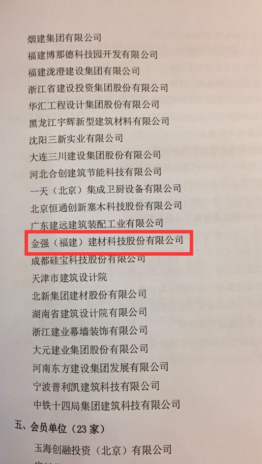 装配式建筑产业技术创新联盟拥有48家理事长单位,包括杭萧钢构股份有限公司、浙江精工钢构集团有限公司、浙江东南网架股份有限公司等,而金强(福建)建材科技股份有限公司作为福建省装配式建筑龙头企业,也成为理事长单位。