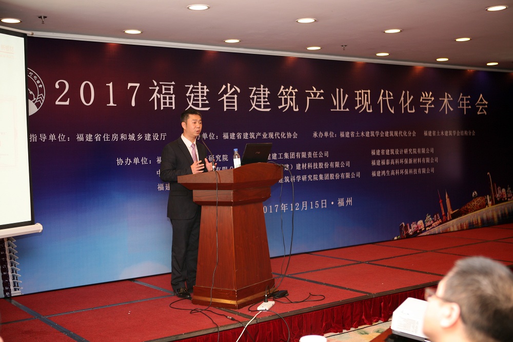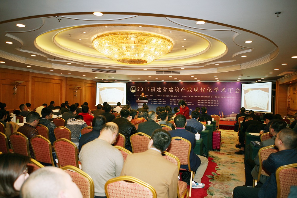 2017年12月15日,由福建省建筑产业现代化协会主办,福建省土木建筑学会建筑现代化分会、结构分会承办的“2017年福建省建筑产业现代化学术年会”在福州召开。来自省内装配式建筑领域的近200位精英齐聚一堂,交流信息和经验,共谋装配式建筑业的发展。会议由黄昌钦会长主持。省住建厅建筑业处施建元处长、省造价总站林昌明副站长、福州市产业办陈金敏处长、厦门产业办主任王华琪处长及泉州宁德等相关地市产业办领导参加会议。