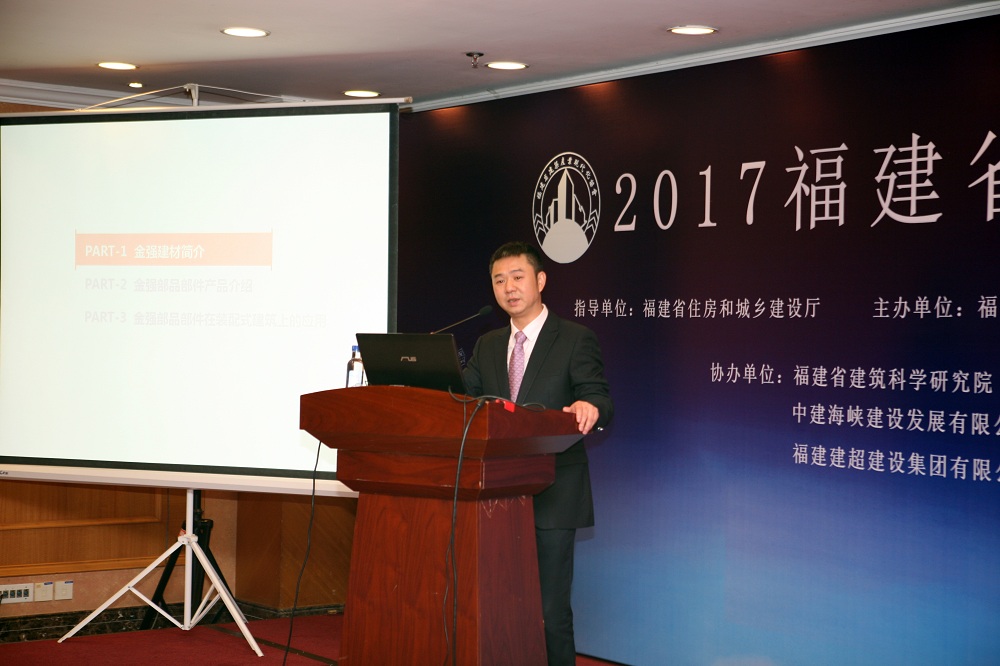 会上,省内从事装配式建筑领域的专家和企业代表,围绕国家推动装配式建筑发展的政策和措施作专题演讲,展示和分享装配式建筑发展的技术经验和新成果。金强建材黎忠和总经理以“金强部品、部件在装配式建筑上的应用”为题,介绍了金强PCI装配式内墙维护、金强PCE装配式外墙维护以及金强装配式防火风管等系统的设计与运用,展示金强近两年在装配式建筑新领域探索与实践的成功案例,受到同行的关注和认同。