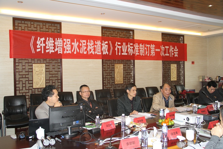 根据工业和信息化部工信厅科函 [2017]106号“关于印发2017年第三批行业标准制修订计划的通知”下达了《纤维增强水泥栈道板》行业标准的制订任务(计划编号:2017-1275T-JC)。2018年1月6日,《纤维增强水泥栈道板》行业标准制定第一次工作会在福建省福州市召开。由工信部指定苏州混凝土水泥制品研究院有限公司和金强(福建)建材科技股份有限公司为主编单位。这次前来参编的单位还有福州市规划设计研究院、福建工程学院、中恒(福建)城镇建设开发有限公司、福州市欧文森建材有限公司等单位。
