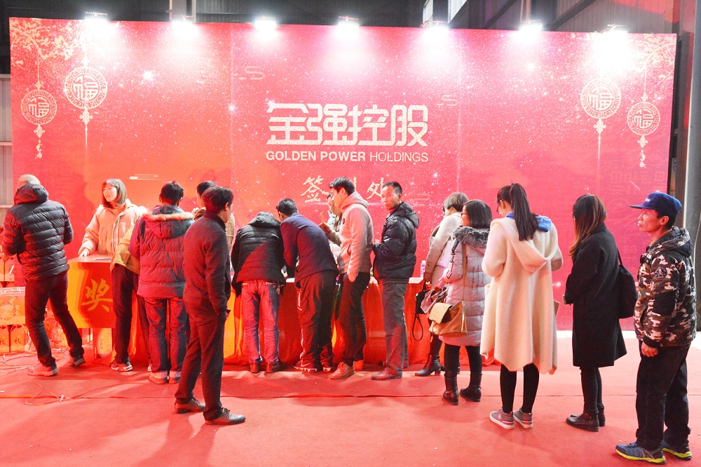 签到现场,工作人员给每一位参加年会的人派发丰厚的新年大礼包。丰厚的大礼包是金强控股向每一位在2017年辛勤付出一年的金强员工表达诚挚的谢意。