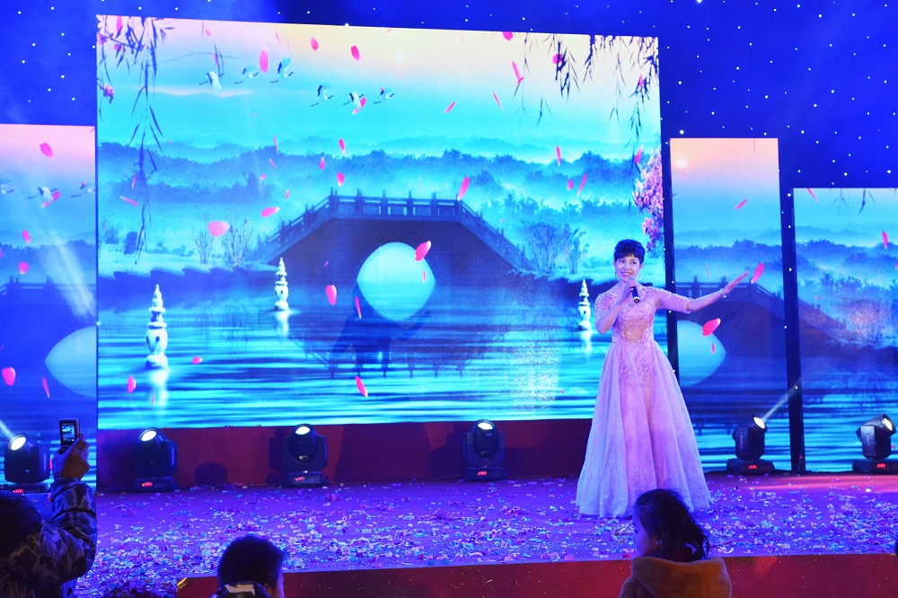 年会尾声,在全体金强员工的热烈呼声中,金强控股董事长刘金铃、金强控股董事长夫人陈辉、金强控股总裁翁斌等等众高管上台与嘉宾叶春芳合唱《难忘今宵》。金强控股2018新年年会也在大家对金强2018年的美好期冀中结束。