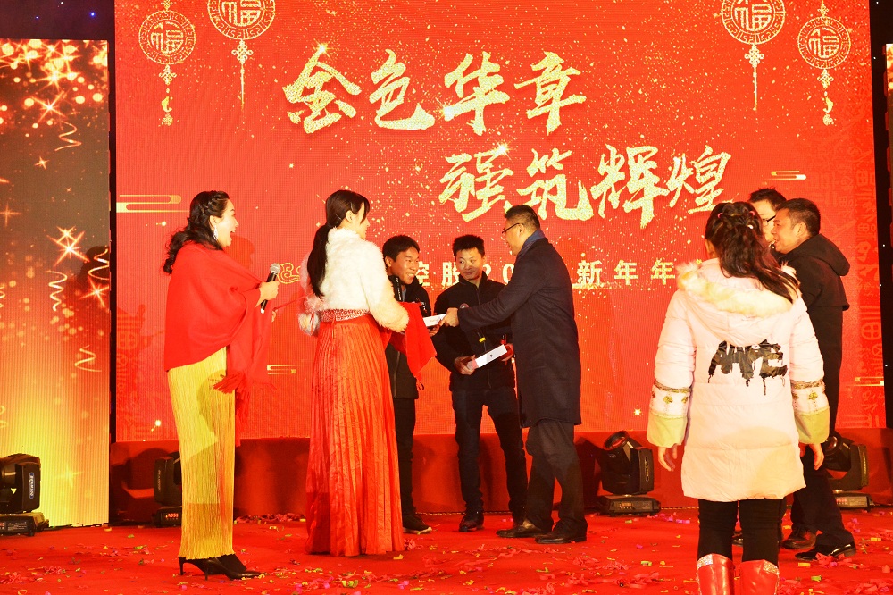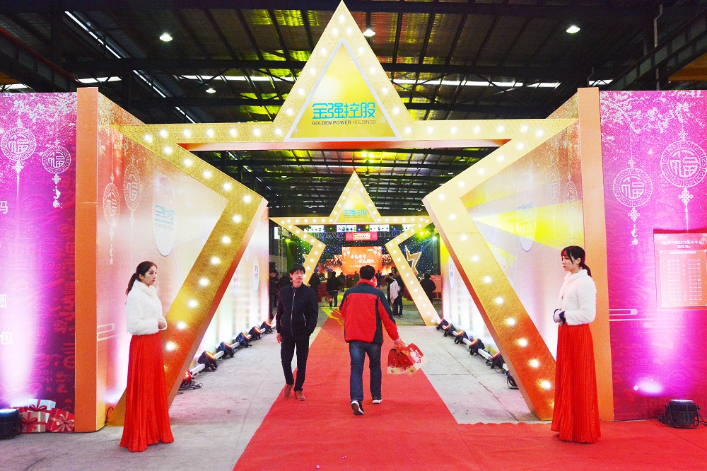 金强控股年会现场年味十足,璀璨闪耀的星光红毯寓意着每一位为金强献力的员工都是集团的明星,让每一位金强人进场时都犹如明星般闪耀。