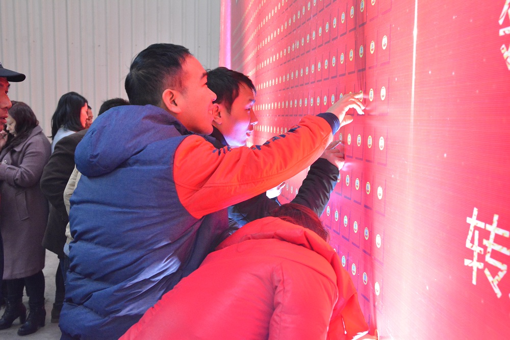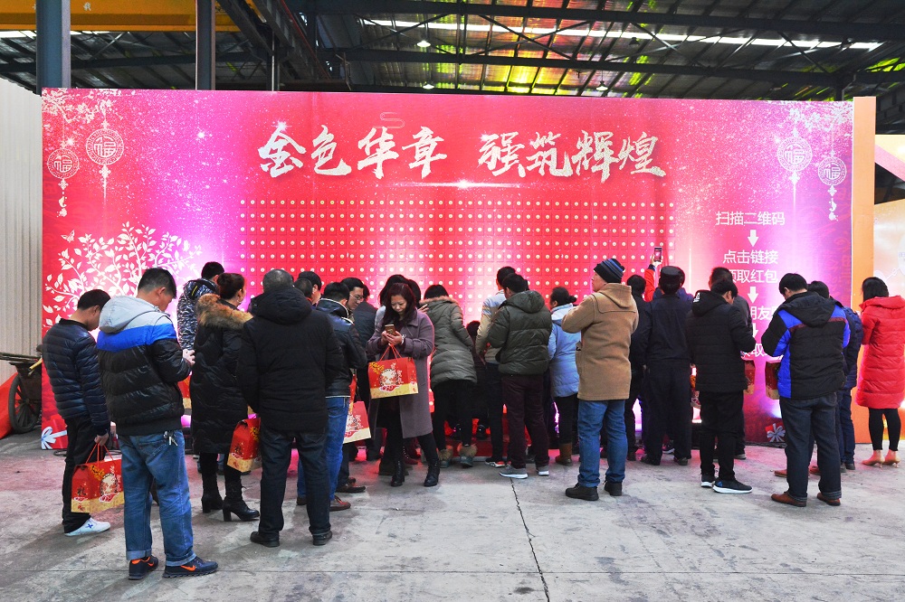 年会入场处设置红包墙专区,每一位前来参加年会的员工或嘉宾都纷纷拿起手机扫码领取随机红包,现场气氛热烈,时不时爆发惊呼声。