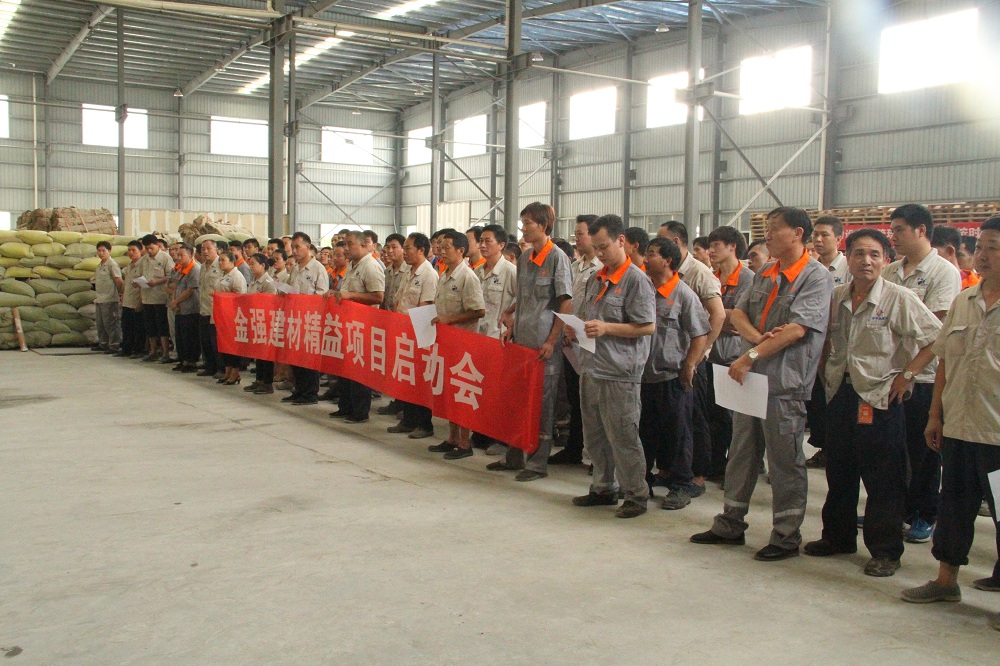 会上,由金强建材科技黎忠和总经理、金强建材科技副总经理徐定丰等领导发表讲话,表示精益生产必须从一线生产员工抓起,通过流程的改善,科学的工作方法提高效率和产品质量。精益生产提倡全员参与,共同解决问题。最后,各项目负责人领取了精益项目生产责任书,全体人员在现场庄严宣誓。