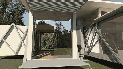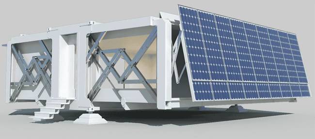 该模块化房屋极具特色:可以自动展开并部署房屋结构。整个过程不需要房屋建筑商介入,也不需要打任何房屋地基,仅需要不到10分钟的时间。