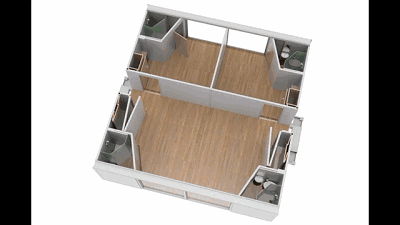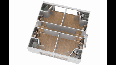 其实,这个模块化房屋就是大大小小的集装箱。而集装箱内所有的内部配件和固定装置都会预先安装,更重要的是这个模块化系统是可逆的,这就意味着它同样可以通过折叠回单元箱之后移动位置。