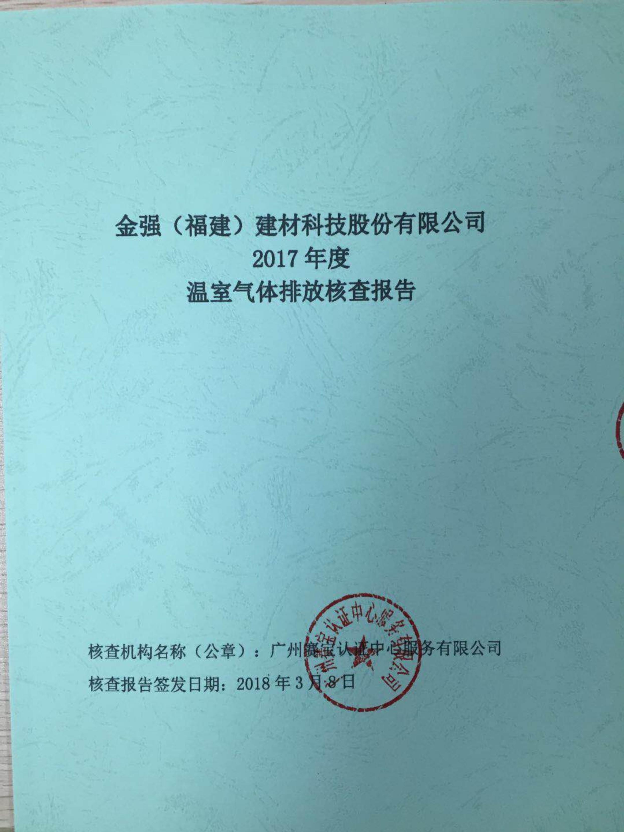 金强(福建)建材科技股份有限公司2017年温室气体核放核查报告