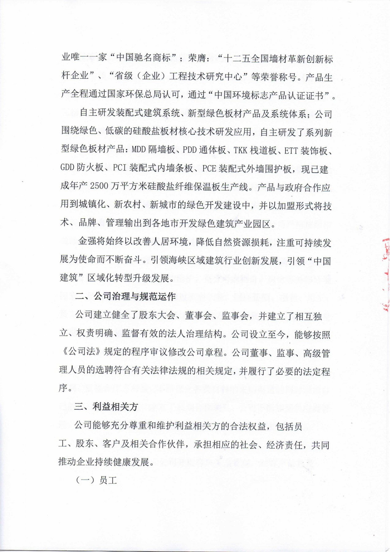 金强(福建)建材科技股份有限公司履行社会责任报告