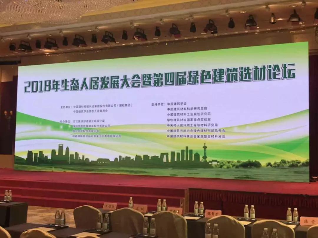 2018年10月18日,2018年生态人居大会暨第四届绿色建筑论坛在北京隆重召开,来自绿色建材与绿色建筑产业链涉及研发、生产、设计、应用等业内专家学者,政府主管部门领导等参会代表齐聚论坛现场,深入探讨如何推进绿色建材领域的新产品、新技术在绿色建筑领域的应用,倡导绿色建材,加快生态人居建设进程。