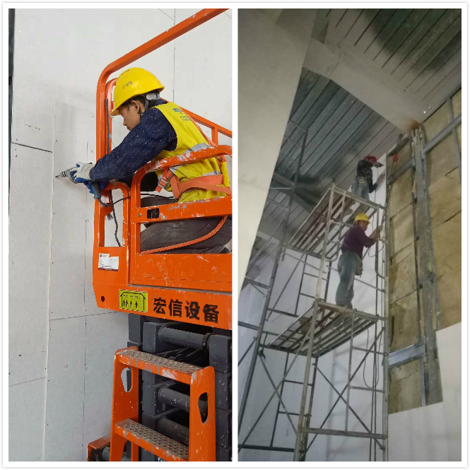 金强MDD板以石英砂为主要材质,板材密度≤0.8g/cm3,该超低密度超越同类型产品。板材轻质高强,无需引孔,易切割,施工容易,可直接通过螺丝或螺钉安装在轻钢龙骨上。