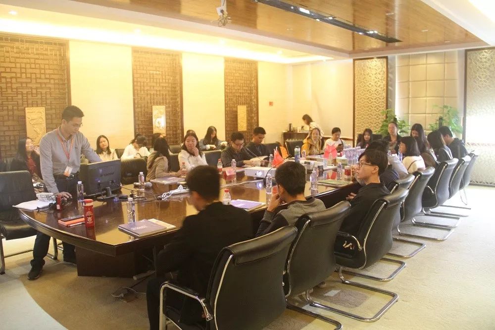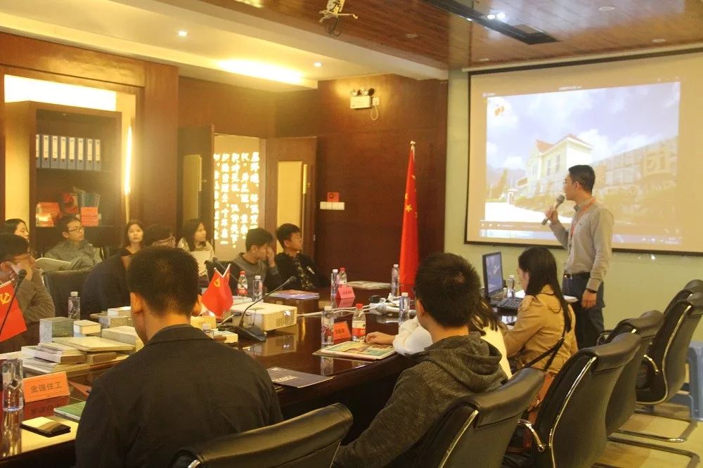 当天,“金强·金领生”一行抵达金强装配产业园后,首先在金强建材精益项目负责人苏鹰明的主持下,召开简单会议,通过PPT演示、发放内刊、产品宣传册等方式为来访学子介绍金强发展现状,企业文化、未来发展规划等。