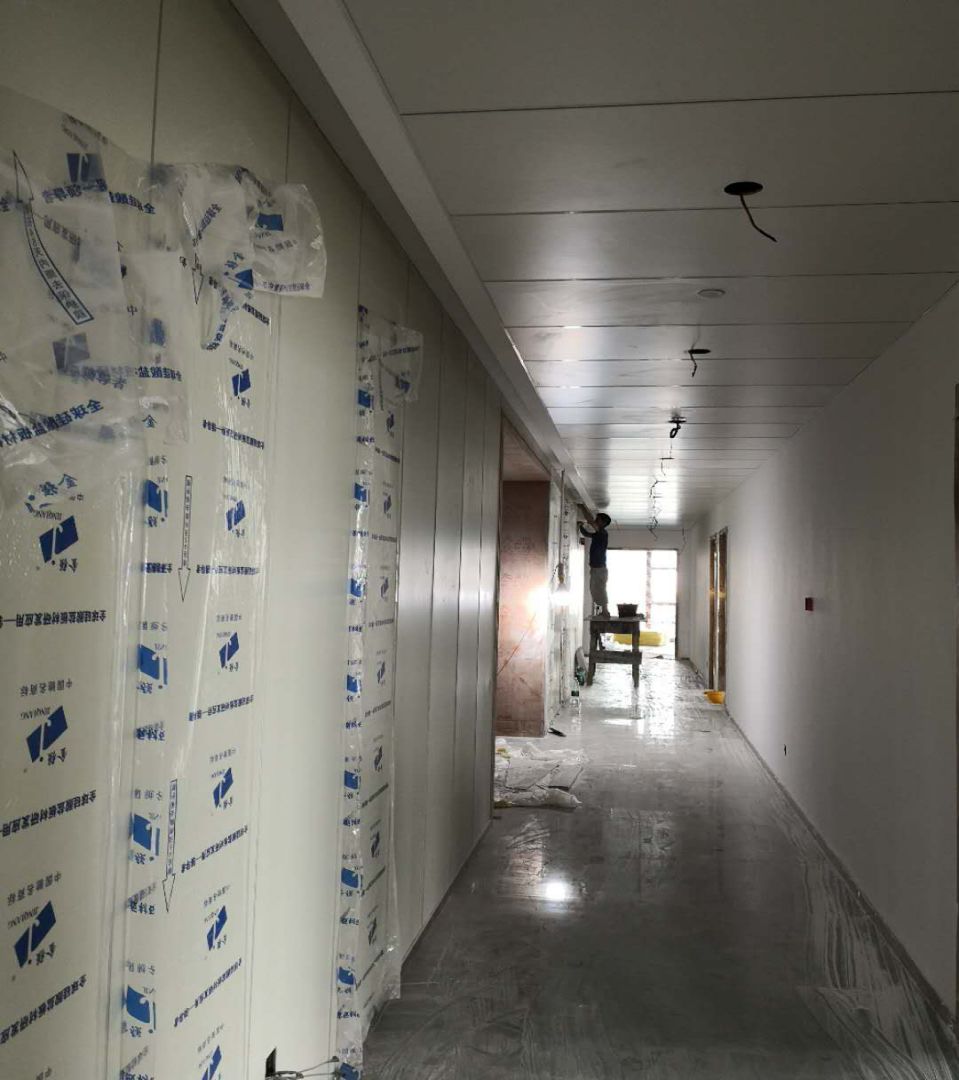 此外,金强ETT装饰板零石棉、零甲醛,绿色环保。产品为工厂化生产,施工现场成品直接安装。采用干挂法最新施工工艺,工序简单,施工便捷,大大缩短长沙长房东郡大厦内隔墙施工工期。
