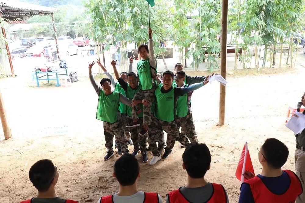在活动尾声,在培训师的主持下,进行了结业仪式。本次拓展训练,通过培训师与学员的教学相长,激励学员自己找到方法,突破自我,团队协作,不断成长。仪式上,金强的参训高管们彼此分享心得体会,在培训师和学员的共同参评下,评选出绿队“亮剑队”为优胜队伍,合影留念。