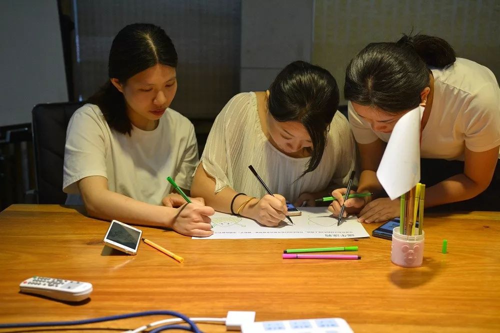 活动现场,每组成员派出代表,任意在设计好的A3纸上图画,自由发挥想象,画出别具一格的粽子。