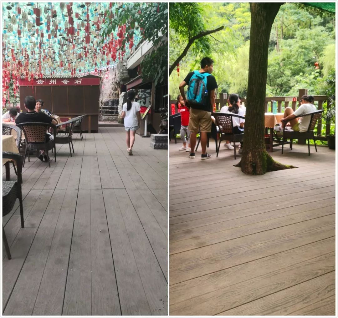 金强TKK栈道板在黔灵公园的应用之处均为人流量较大的区域。过大的人流量极易对地面铺设材料造成较大磨损,而选用金强TKK栈道板铺设而成的公园内的观景台、休憩区、台阶等,在经过2年使用期,且至今未进行过后期保养维护的情况下,板材表面依旧平滑完好,磨损较小。