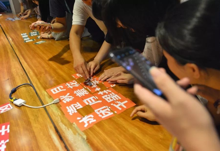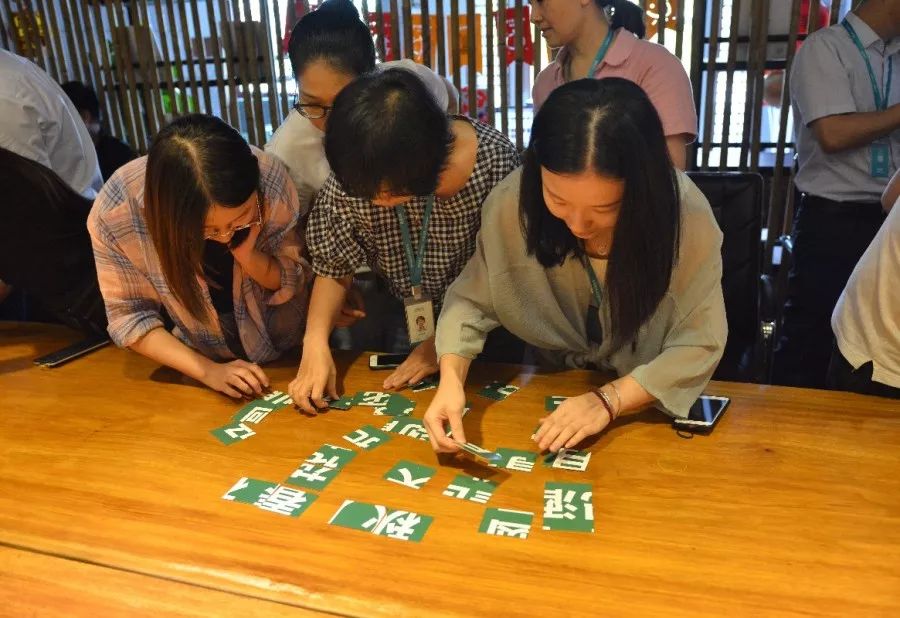 当天,参加活动人员各自组队后,首先进行了中秋词语拼图的游戏。各小组通过抽签,随机抽取一组拼图,并在小组的通力合作下,以最快的时间完成拼图,每组拼图都是由和中秋有关的词语组成。