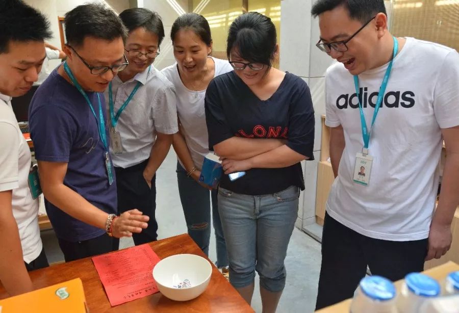 接下来,终于到了“万众期待”的博饼环节啦!每个小组都有序地领好各自的博饼活动“物资”,占领好“地盘”,开始狂欢啦!