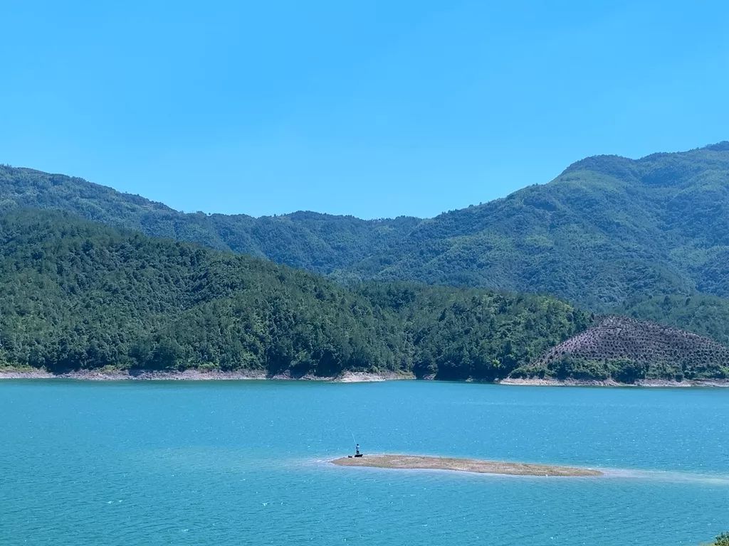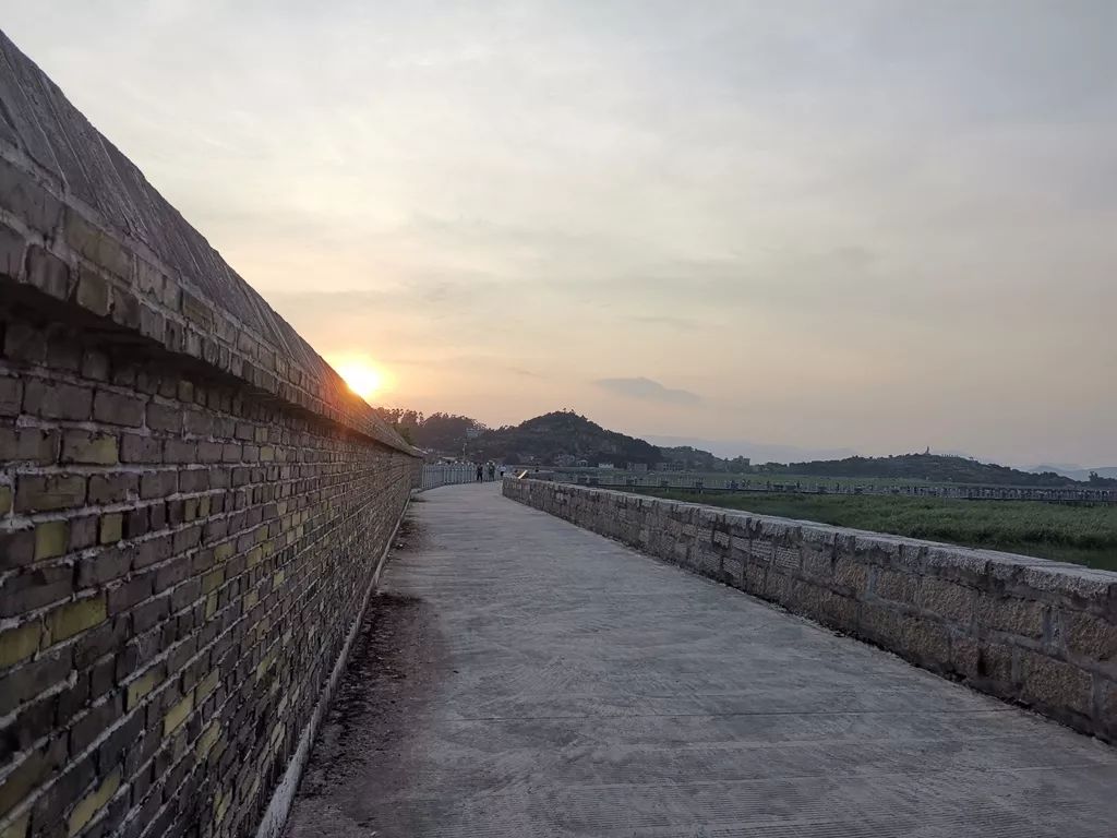 一桥凌波幽谷间,人车同行碧波上。