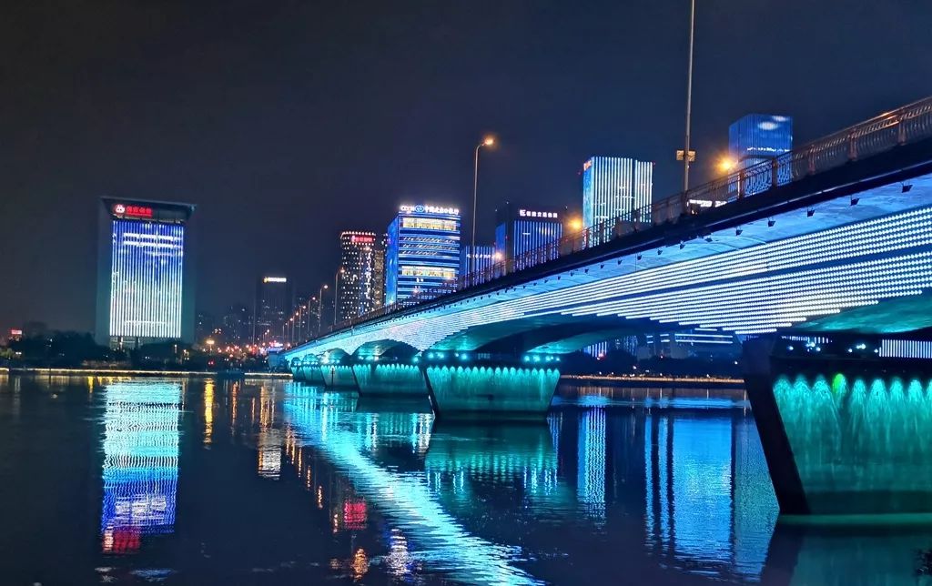 福州三桥的夜色、水景、灯光融为一体,千丝虹影入江妆,美不胜收。