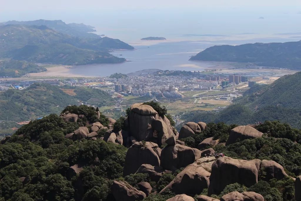这是一幅大自然塑造的有着“海上仙都”美誉的太姥山景观。天空为之震撼,大海柔情拥抱,山峰各显身姿,惟妙惟肖,半山腰的人们为之动容。天、海、山、人相互交融,相依相偎,完美体现了大自然的鬼斧神工,好一幅天然画卷!