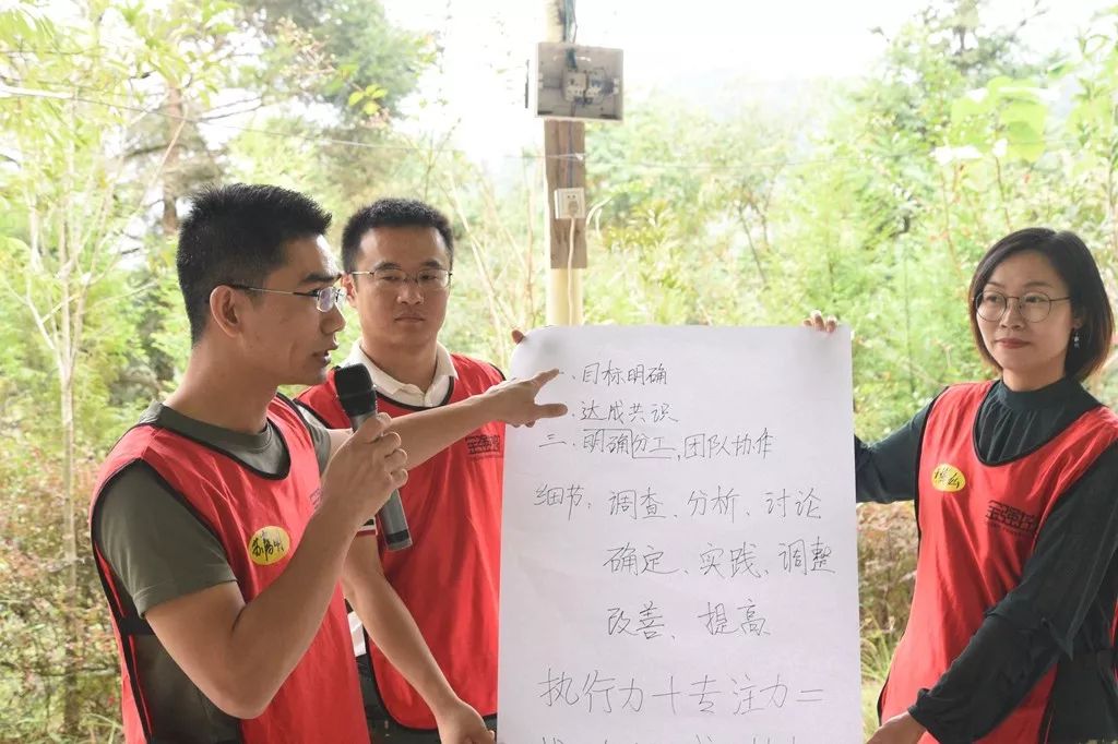 培训全程,所有高管都身穿印有“金强控股”标志的服装参训。在训练项目“通天塔”中,金强控股集团“绿色建材、装配施工、产业发展、工业管理”四大产业板块及四家控股企业的公司口号融入其中,通过企业文化内容的相关字样在道具和任务中的应用,进行企业文化的渗透,从而使参训高管在团队协作中加强对企业文化的学习与领悟。