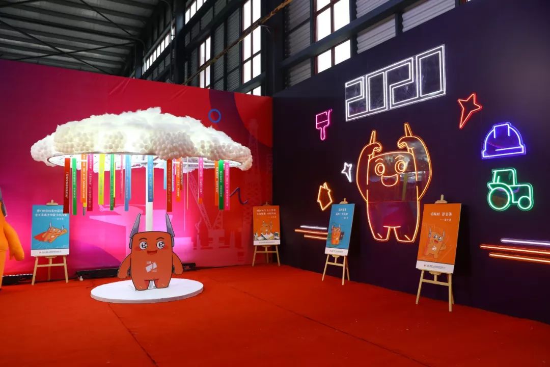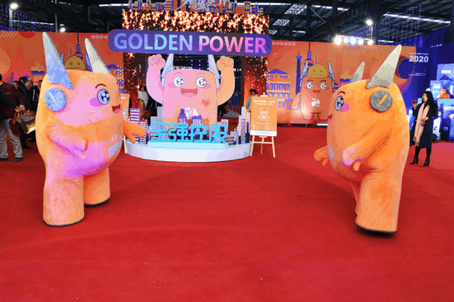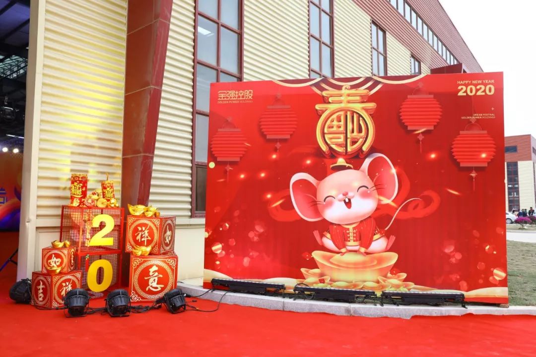 年会现场布置有红红火火的展板和各种春节元素的装饰,金强企业文化形象“金小吉”作为“重要嘉宾”在入口处迎接每一个金强人和嘉宾的到来。