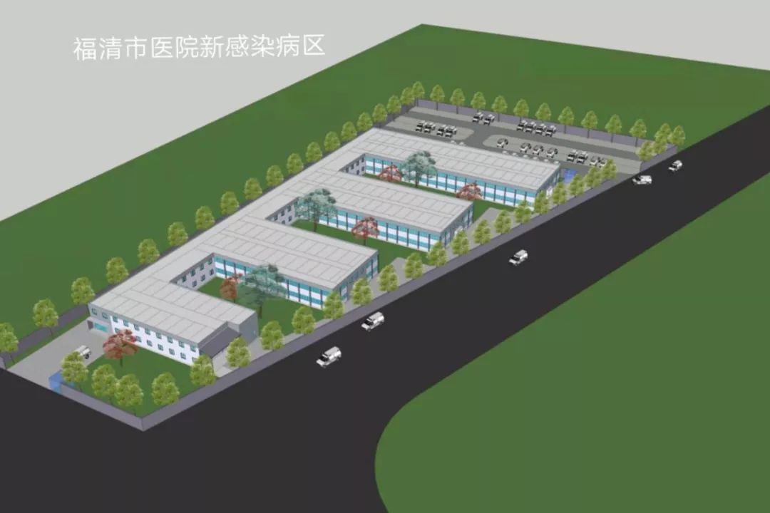 据了解,福清市医院新感染病区项目一期工程3000平方米,含门诊楼及一座隔离病房,从1月27日正式动工起,7天内竣工,即2月2日建成;二期工程5100平方米,包含3座隔离病房,预计20天内建成。医院主体建筑以装配式模块化建筑为主。整个项目可设置约200张床位。