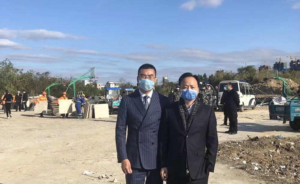 ▲1月27日,金强控股集团董事长刘金铃与金强控股集团总裁翁斌奔赴现场指导工作