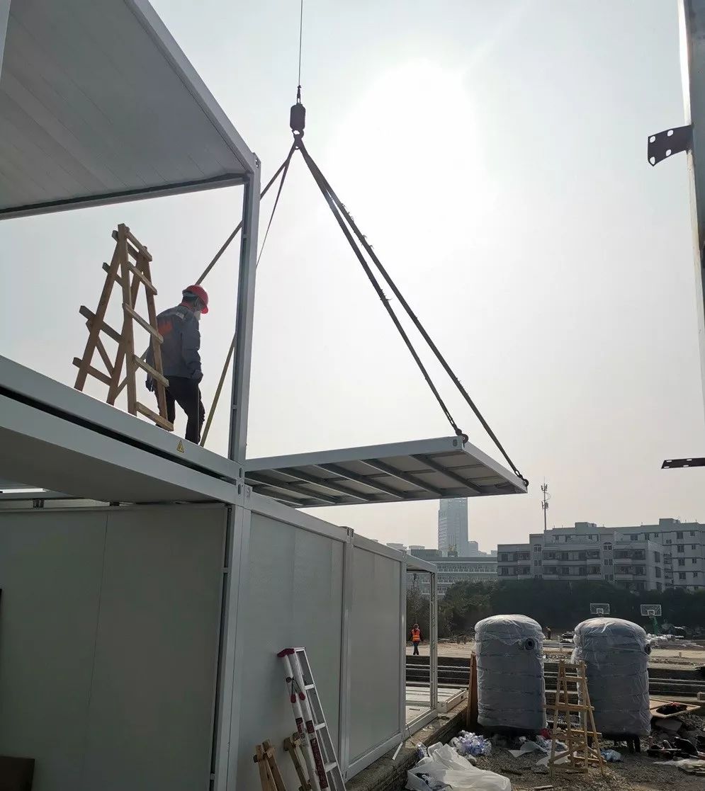 该项目是采用装配式模块化建设的。早在1月26日,接到任务的初期,金强控股集团项目建设团队和其他参建单位进行商讨,便决定该项目必须采用目前国内建设速度最快的装配式模块化房屋建设。