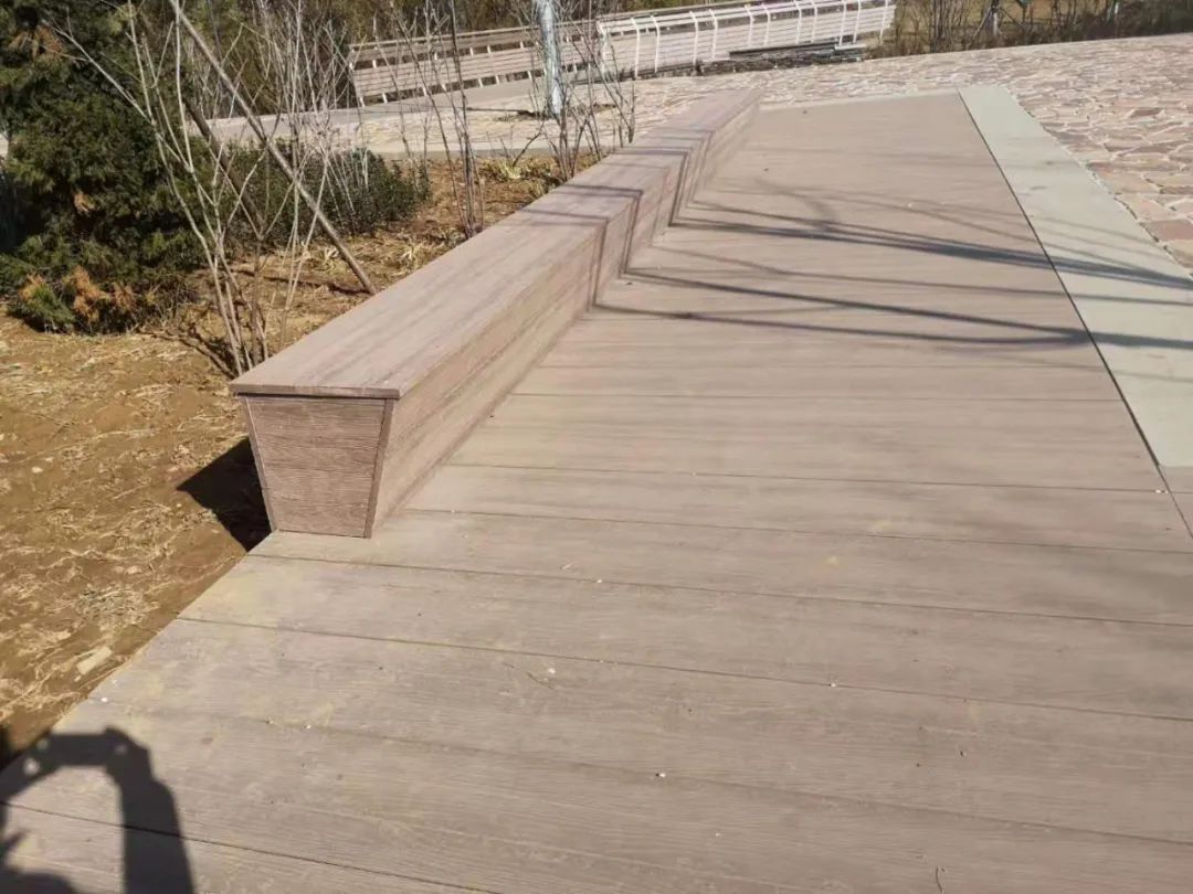 ▲金强TKK栈道板运用于蝶湖公园休闲椅
