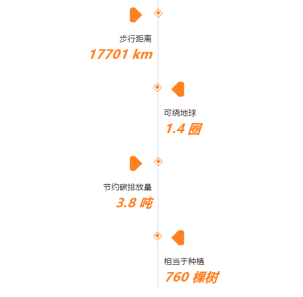 在这场活动中,步数累积之后可以转化为积分进而兑换礼品,步数成为了市场意义上的“筹码”,参赛者用这些“筹码”在活动中可以换取自己想要的礼品。但是实际上,步数的意义远非于此。用一组数据来看看,这些步数创造了什么价值~