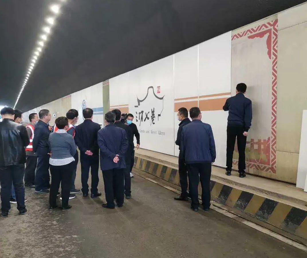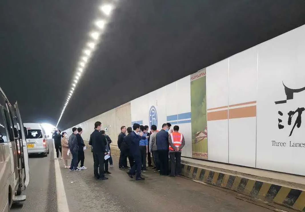 在现场,王宁书记察看工程情况后,现场查找问题、现场研究对策、现场部署工作。他对隧道的景观提升效果表示肯定,强调在提升工程中要注重细节,加强施工扬尘治理,打造高颜值高品位的城市景观线路。