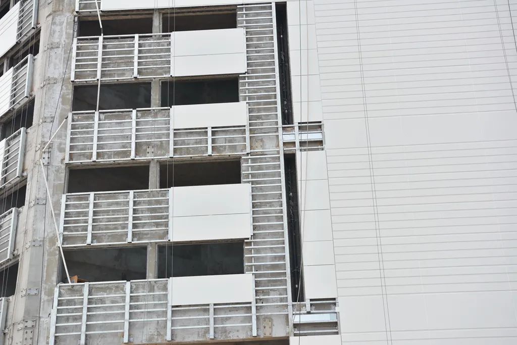 金强PDD白色通体板,质感自然,无色差,应用于建筑外墙上,更好地表现了现代简洁、时尚大方的建筑风格。