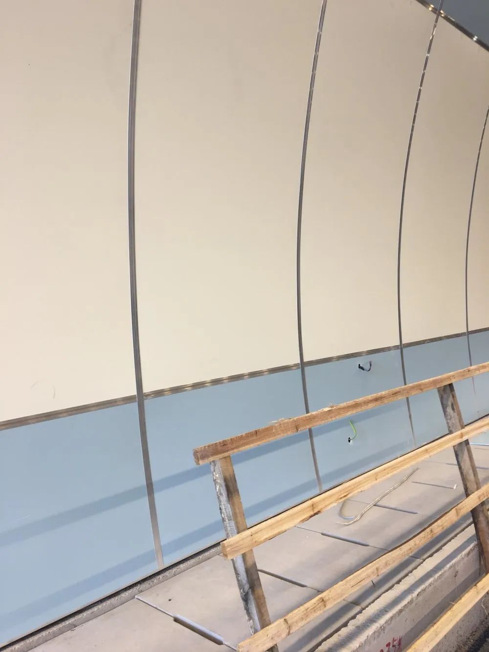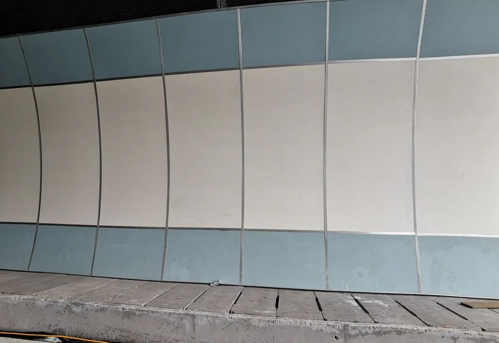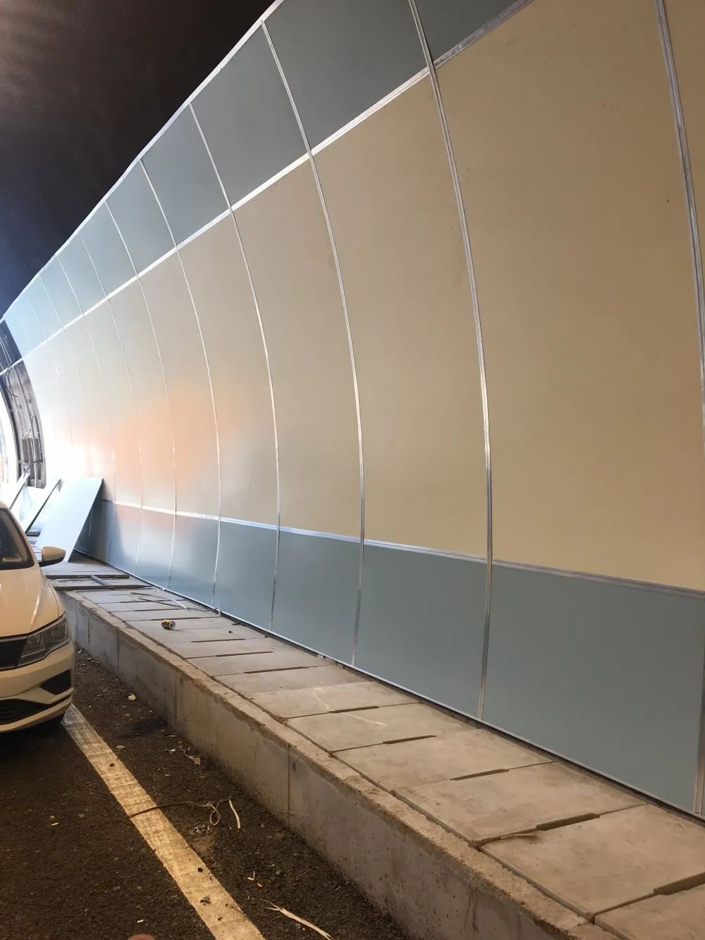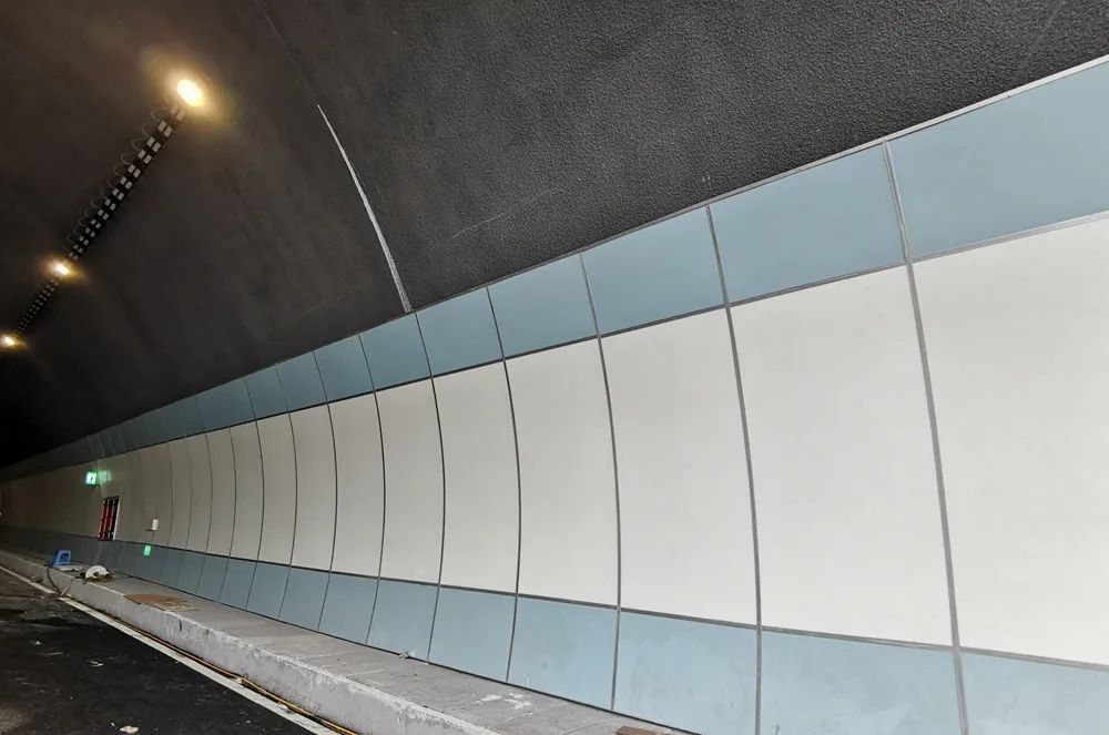 福马路鼓山隧道拓宽工程采用金强ETT装饰板装饰隧道。金强ETT装饰板可根据设计要求定制尺寸和颜色,现场采用干法施工。在隧道两侧完成龙骨骨架搭设后,可直接将金强ETT装饰板搭设于龙骨上,可减少施工现场的建筑垃圾,安全环保。
