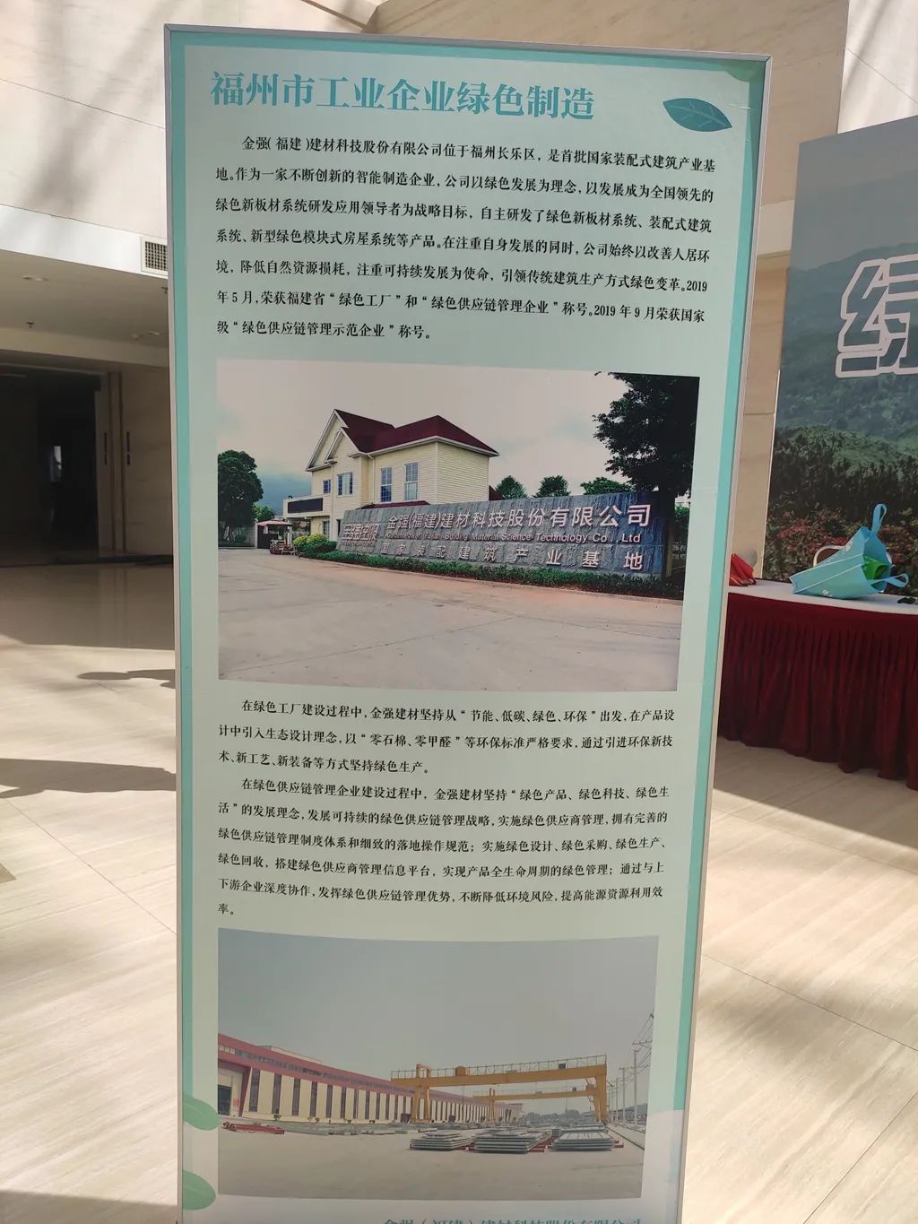 金强(福建)建材科技股份有限公司作为国家级和省级绿色供应链管理示范企业、省级绿色工厂以及荣获省级绿色设计产品的公司,受邀参加此次活动,在现场以图文形式展示了近年来的绿色制造成果。