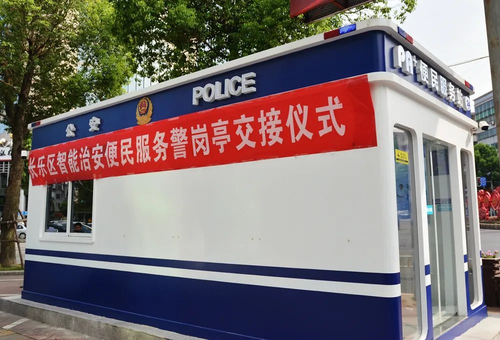 警岗亭由金强控股集团有限公司捐建,捐建总金额约3000万,一期拟建设20座,目前已建设完成8座并投入使用,未来将根据需求及实际情况增补建设。警岗亭以“提升城市治安防控、提供便民服务“为核心 ,亭体由两个部分组成,一部分是担负公共安全服务功能治安、警务功能区,另外一边是自助便民服务区。采用专业安防材料,达到国家行业标准,安全级别得到国家公安部认证。