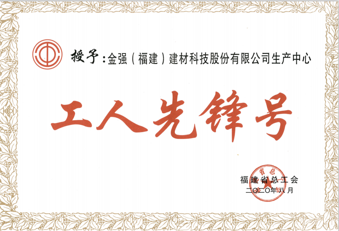 “工人先锋号”是中华全国总工会组织的以“创一流工作、一流服务、一流业绩、一流团队”为活动内容的荣誉称号。新冠疫情发生以来,金强(福建)建材科技股份有限公司生产中心积极参与疫情防控工作,在疫情爆发初期,克服疫情期间人员短缺、物资紧张等困难,为武汉火神山医院、雷神山医院、福建省福清市新感染病区等多个抗疫建设项目提供集装箱楼板、模块化房屋等产品;在国内疫情相对平稳后,金强建材生产中心坚持一手抓防控,一手抓复工,促进各项目平稳推进。
