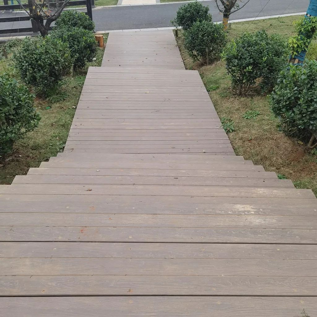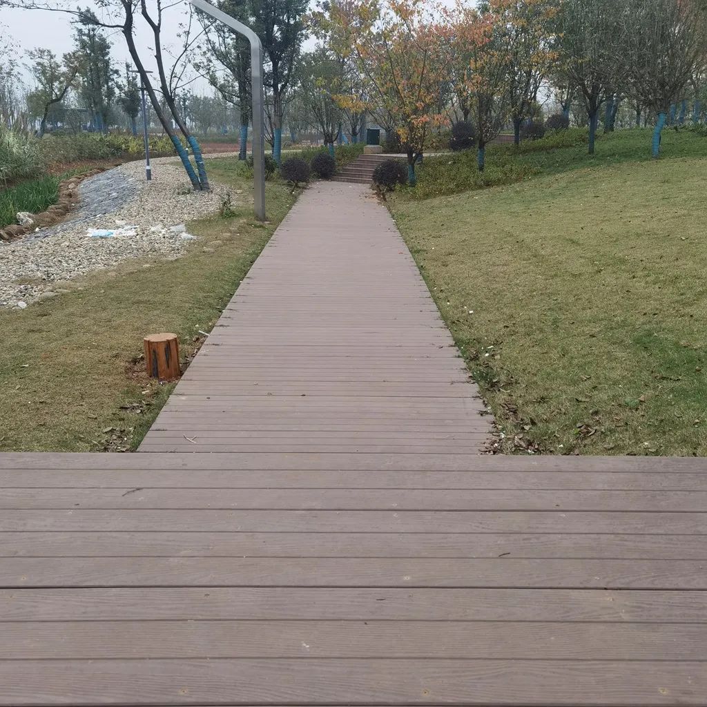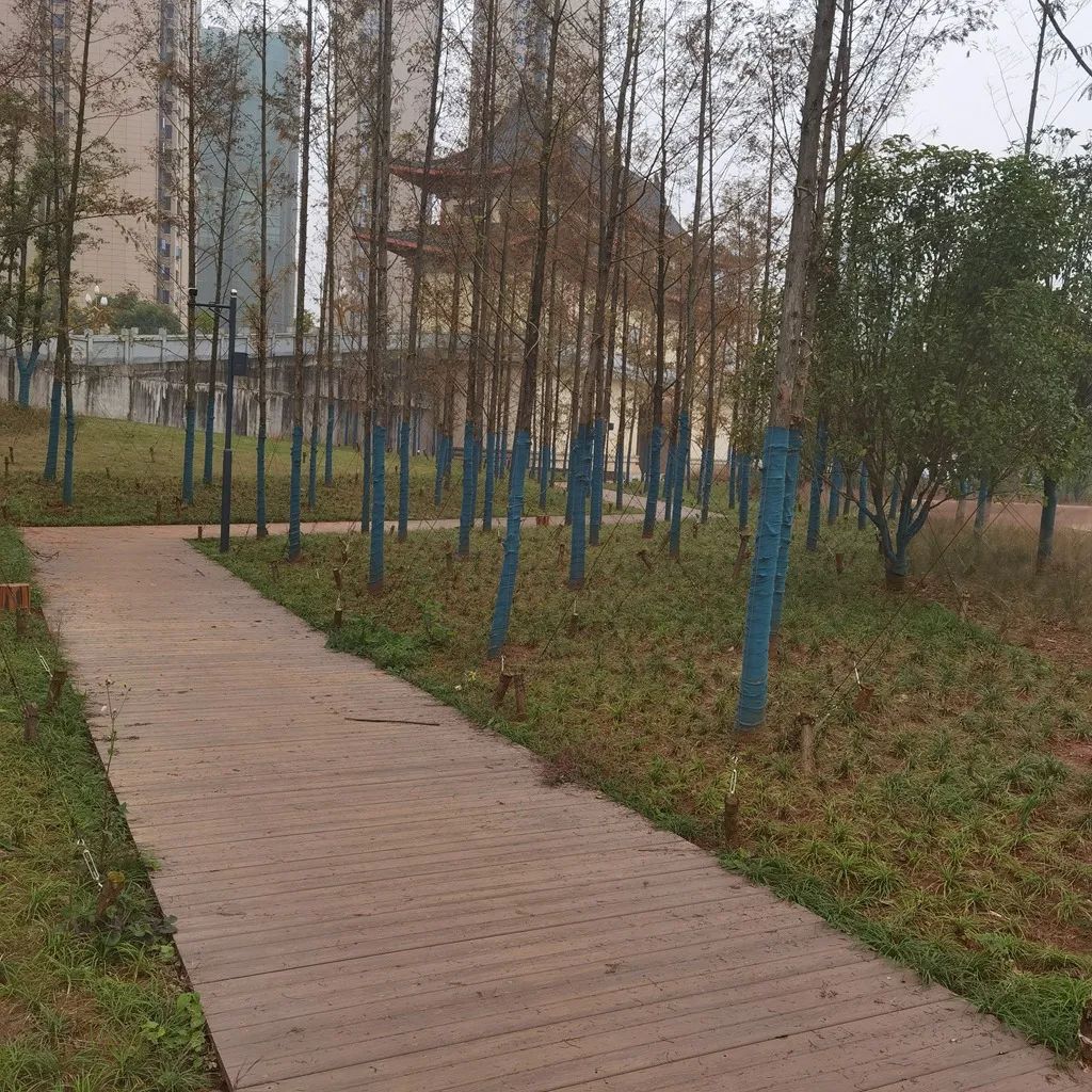 湖南常德沿江风光带临江而建,周围环境湿度较高,采用金强TKK栈道板应用于栈道和栏杆,相对传统防腐木、竹塑等板材可以更好地避免板材发霉。同时,作为露天的市民休闲公园,人流量大且常年受到风雨侵蚀,选用具有耐磨性和耐候性较强的金强TKK栈道板,可有效保持和提升景观美貌度。