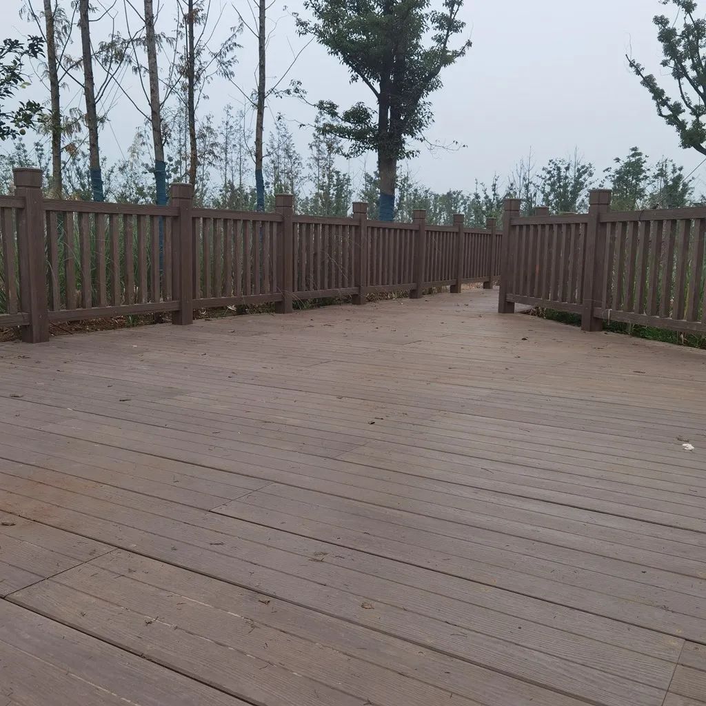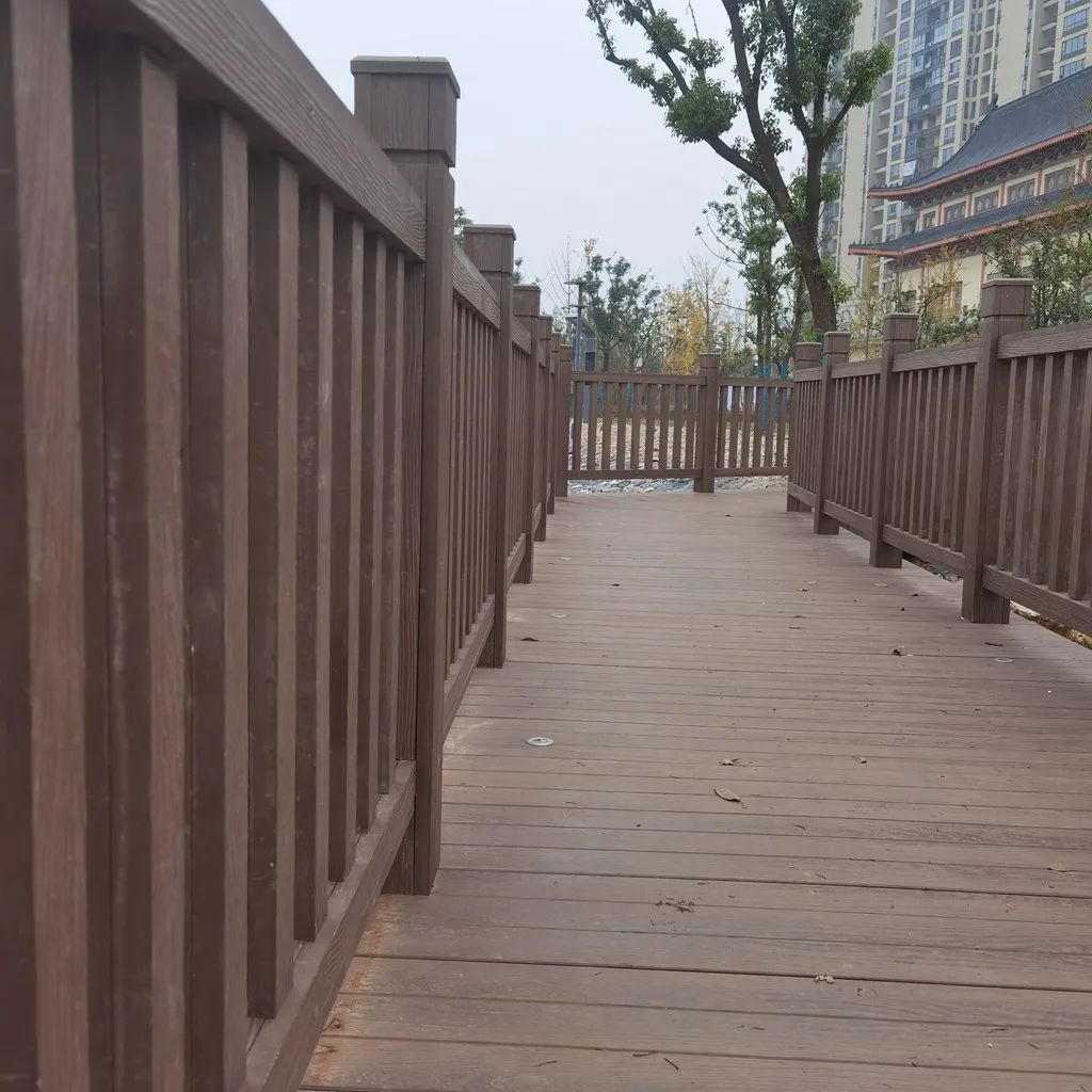 湖南常德沿江风光带在建设中采用了金强TKK栈道板应用于栈道和栏杆。金强TKK栈道板以高品质硅酸盐无机胶凝材料、精细石英粉、全进口植物长纤维等原材料,通过现代化生产工艺、精细木纹印刻、高温高压养护而成,具有无机材料防火、防水、防霉、耐候、防蚁、耐久等特点。