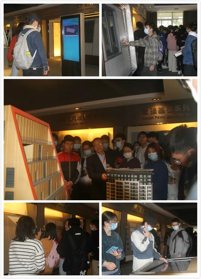 师生一行首先参观了金强装配建筑产业园一期的人文建筑馆,金强建材副总经理朱晓阳向他们介绍了金强装配建筑产业园区的规模与发展情况,以及绿色板材产品、装配式围护系统等产品特点。