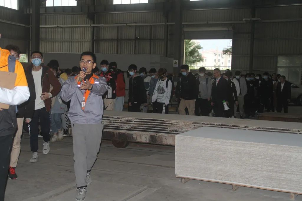 2020年12月24日上午,金强装配建筑产业园迎来别样的生机与活力——一批来自福州大学材料科学与工程学院的108名大学师生来此参观学习。金强控股集团董事长助理、人力资源中心总监黄丽华,金强控股集团子公司-金强建材副总经理朱晓阳,综合管理部总监廖发根等公司领导热情接待了师生一行,并全程陪同参观。