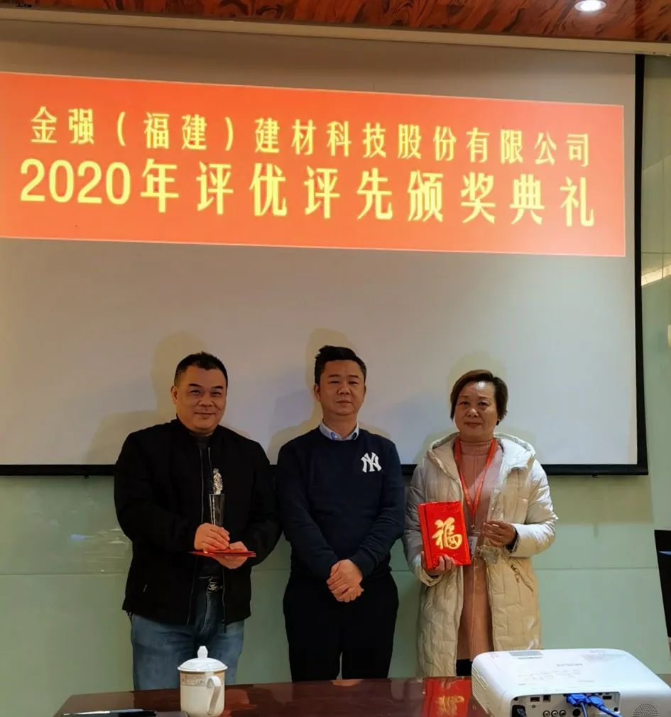 随后,黎忠和总经理带领大家回顾和总结了2020年的工作和成绩,他表示,2020年公司涌现了一批先进工作者,感谢他们对公司的付出与奉献,也祝贺他们获得荣誉和奖励,希望新的一年,大家再接再厉,积极进取,为金强建材发展再献力量,共同努力完成各项任务!