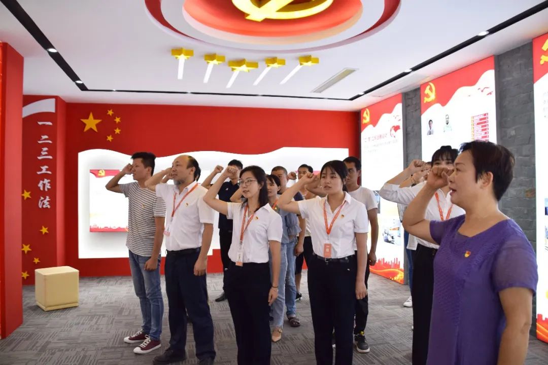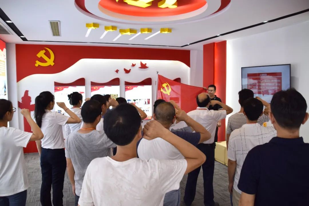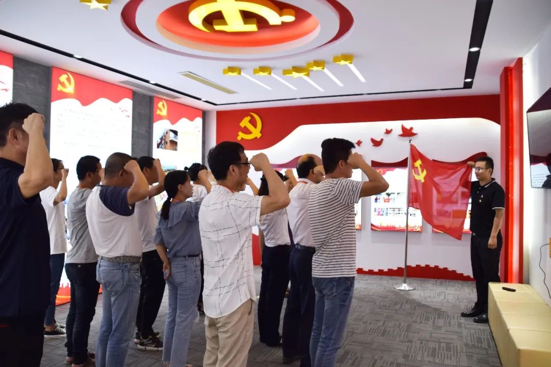 升旗仪式结束后,在中共金强(福建)建材科技股份有限公司党支部副书记张琼英的带领下,全体党员前往党建活动中心,在党旗下,庄重而严肃的重温入党誓词:“我志愿加入中国共产党,拥护党的纲领......”一声声一句句,铿锵有力,敲在在场的每一位党员的心上。