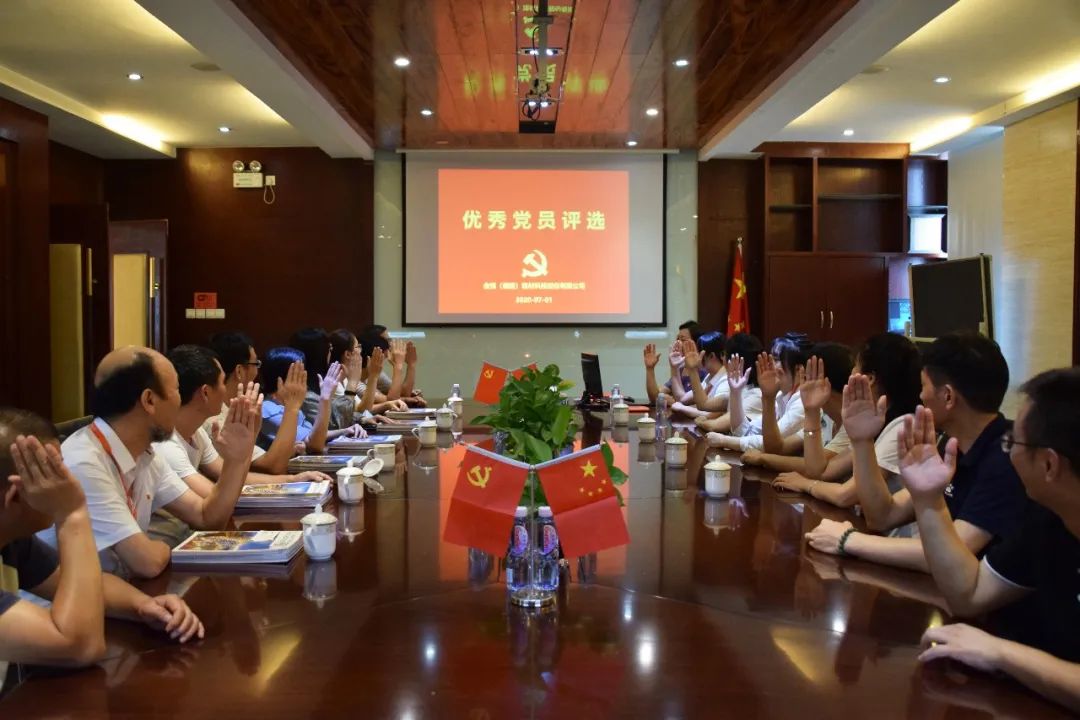 为纪念建党99周年,树立典型、弘扬正气、表彰先进,进一步提高党员素质,推进企业党建工作创新,充分发挥党员先锋表率作用,中共金强(福建)建材科技股份有限公司党支部开展“优秀党员评选”活动。通过对各党员在政治思想、工作作风等方面的考量,金强建材党支部最终推选了徐定丰、刘石、刘小庆三位党员作为优秀党员候选,经过党员大会的充分讨论,全体党员一致举手表态,同意三人为金强党支部2020年度优秀党员,并于7月1日上午为三人颁发了荣誉证书。